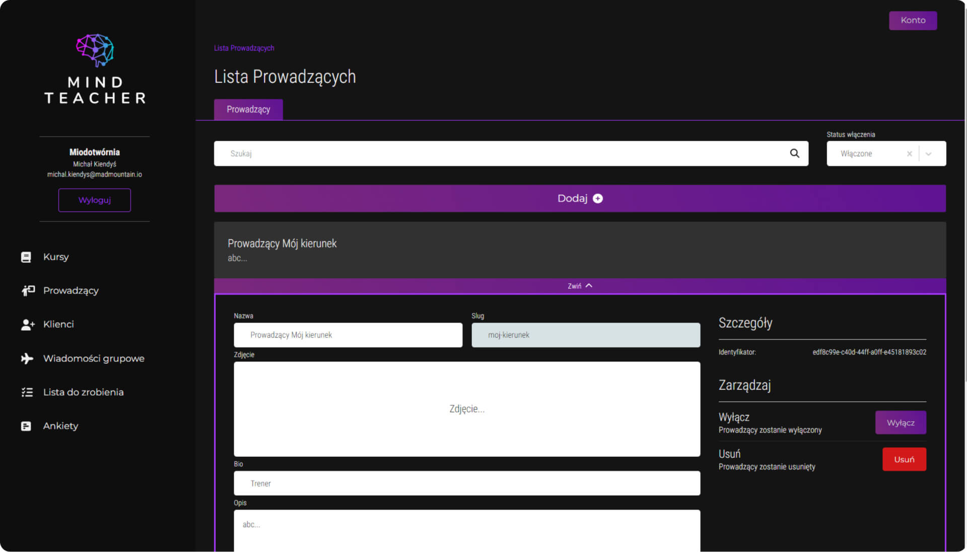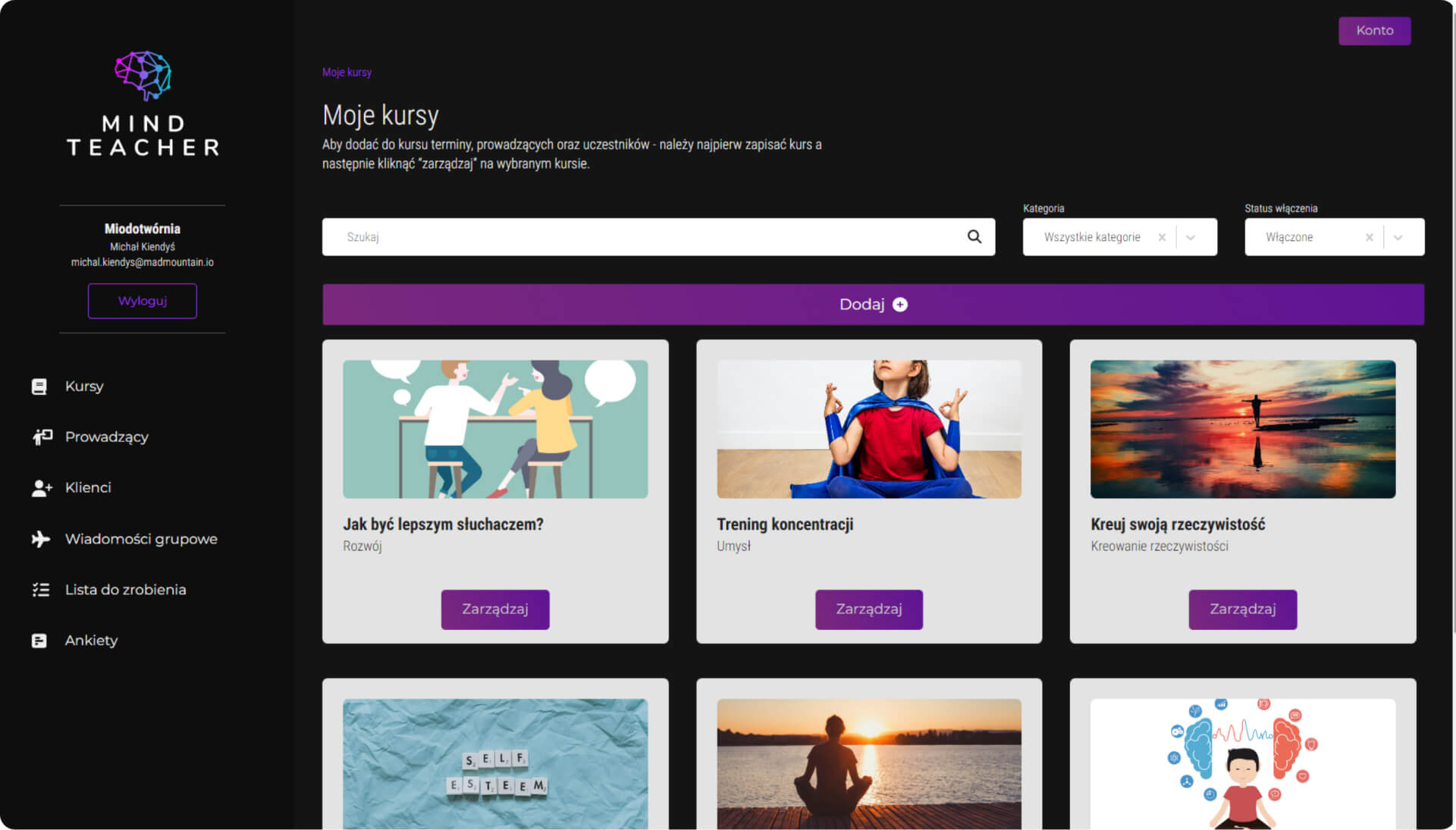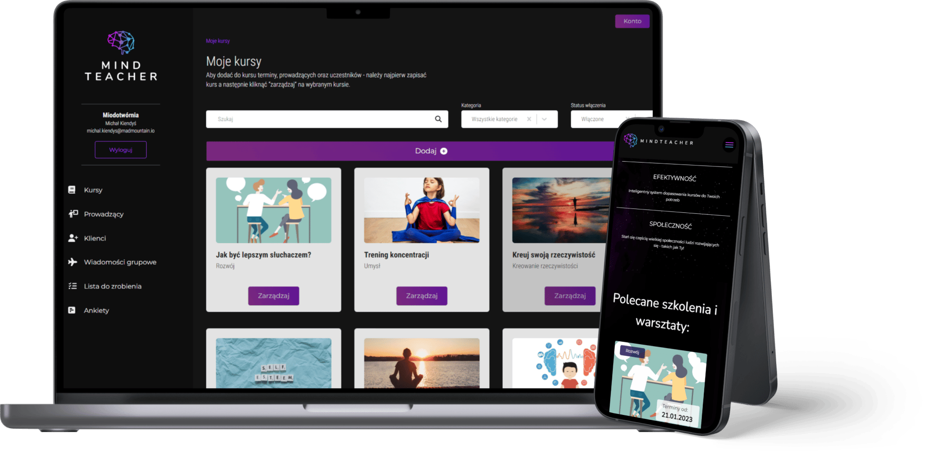 MindTeacher.pl jest serwisem internetowym, który umożliwia firmom oferowanie swoich kursów z zakresu rozwoju mentalnego. Jest to platforma edukacyjna, która zapewnia łatwy i wygodny sposób na dostęp do szkoleń dotyczących rozwoju osobistego, nastawienia, motywacji i produktywności.