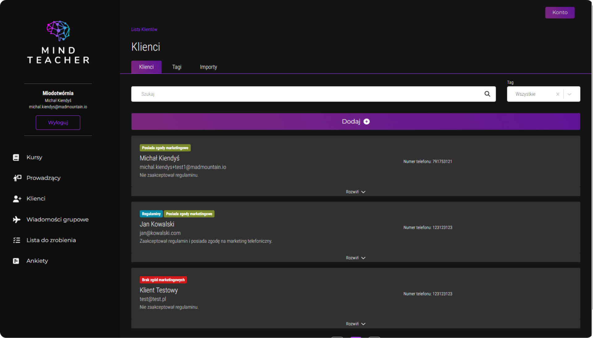 pozwalający firmom szkoleniowym zarządzać oferowanymi kursami, utrzymywać kontakt z uczestnikami i publikować swoją wizytówkę na portalu.