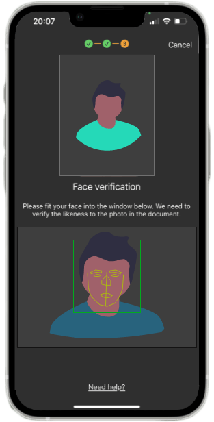 Główna funkcjonalność aplikacji polega na porównaniu zdjęcia twarzy użytkownika wykonanego za pomocą kamery smartfona z fotografią z dowodu osobistego lub paszportu. Model Machine Learning analizuje kluczowe punkty twarzy i na tej podstawie dokonują dokładnego porównania.
