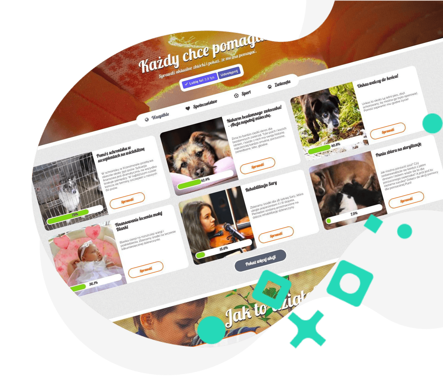 Przygotowaliśmy nie tylko atrakcyjną platformę, ale także wygodny panel administracyjny do obsługi zarówno treści serwisu, zarządzania użytkownikami i fundacjami. Zajmowaliśmy się również pozyskiwaniem fundacji do współpracy oraz działań marketingowych, które umożliwiły pozyskiwanie kolejnych darowizn.